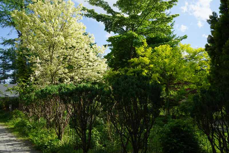 西庭のスズランスイセン、奥に垣間見えるのがPOLLYANNA。