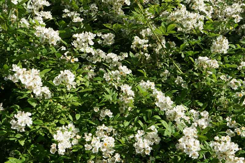 ロサ・ムルチフローラ POLLYANNAのポーチ脇に咲く。