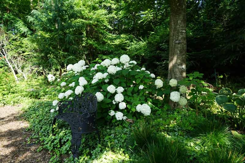 イワガラミ 学名:Schizophragma hydrangeoides アジサイ科イワガラミ属の落葉つる性植物。噴水池の端のハンノキにからみつき、もう10m程も這い上がっている。