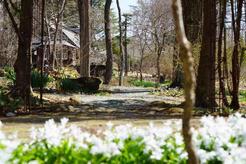 この頃は未だ木々は芽吹き始めで、西庭から母屋(POLLYANNA)やCottonweedを望める。 4/22日