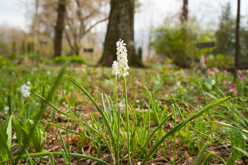 花壇から芝生の中に逃げ出したムスカリ。 4/3日