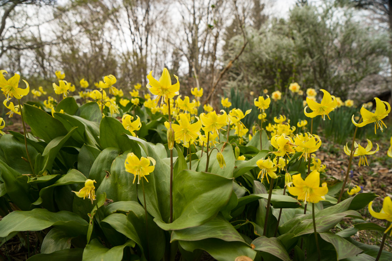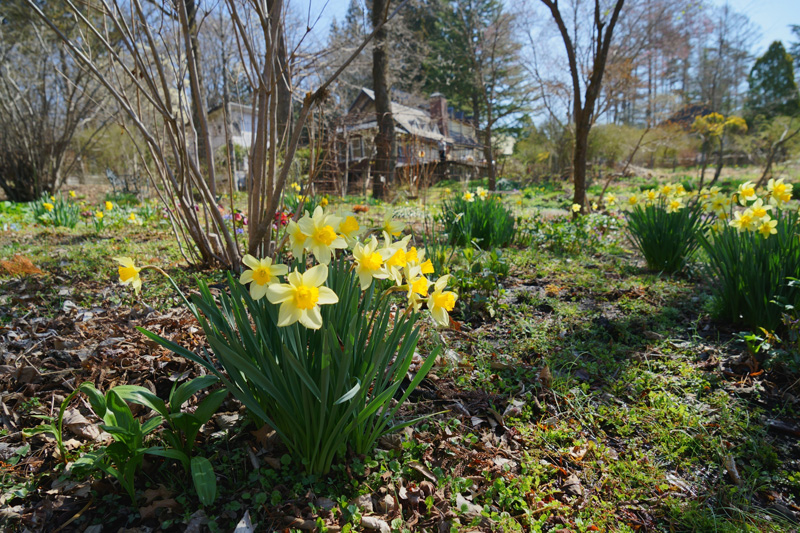 庭のあちこちに拡がり続けるスイセンなど寒さに強い花たちが咲き競っています。 4/3日